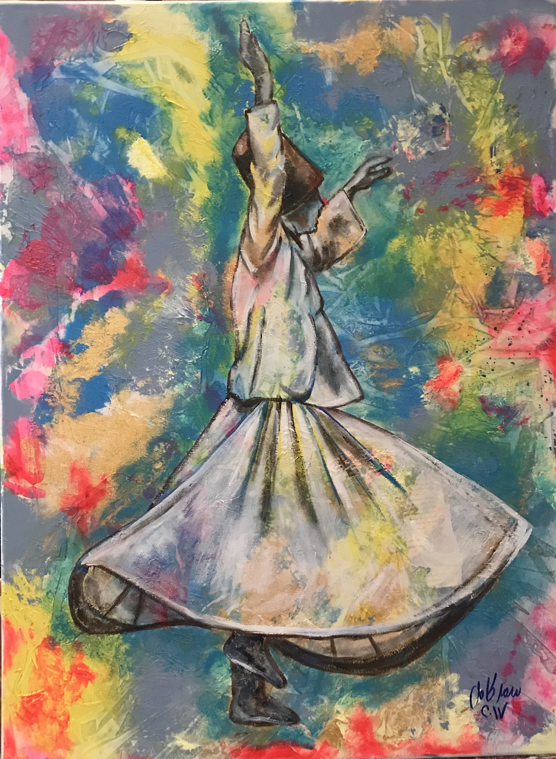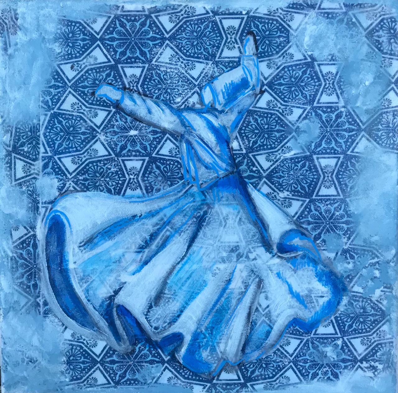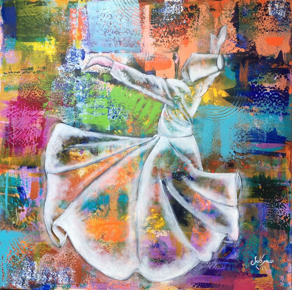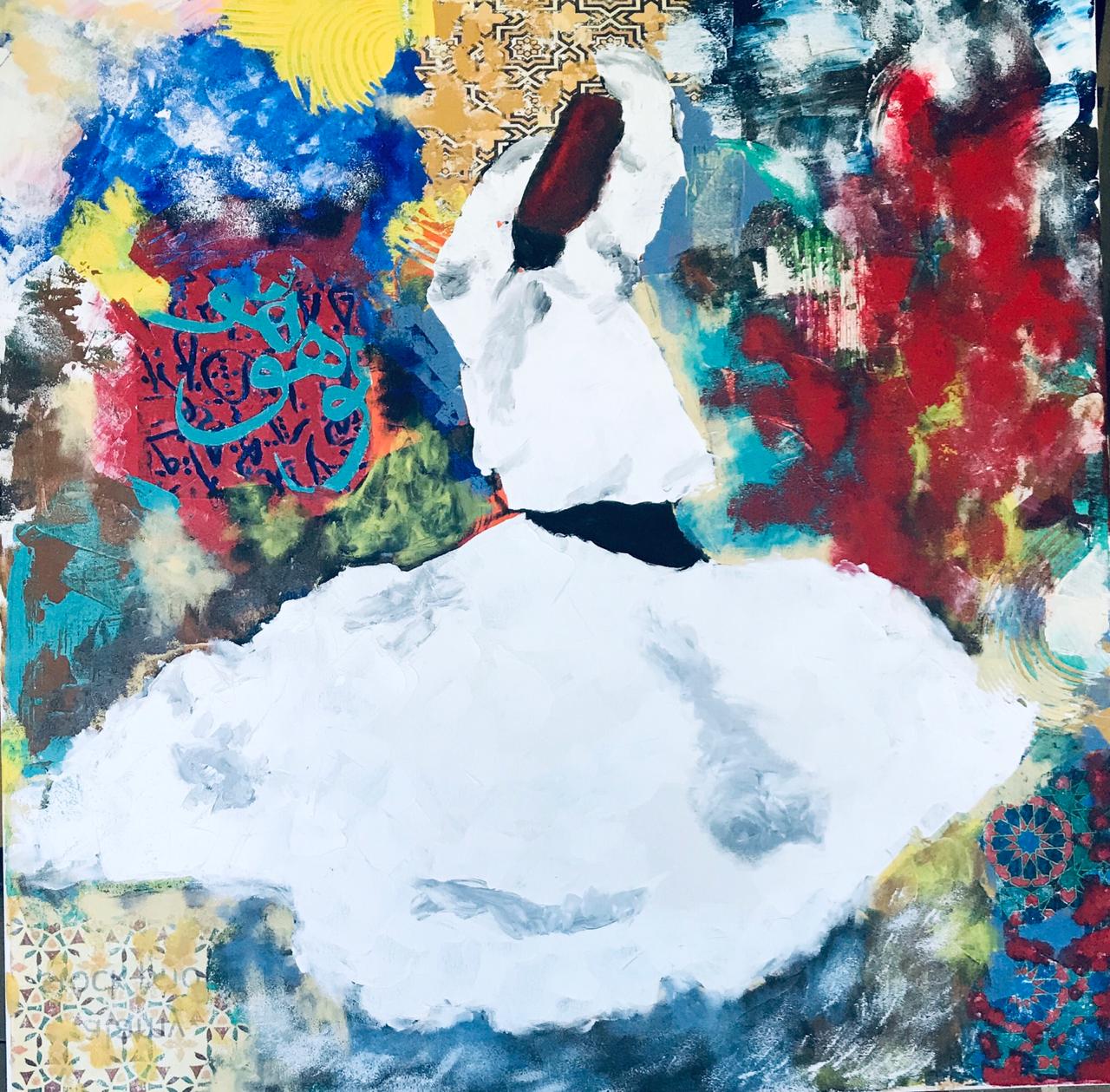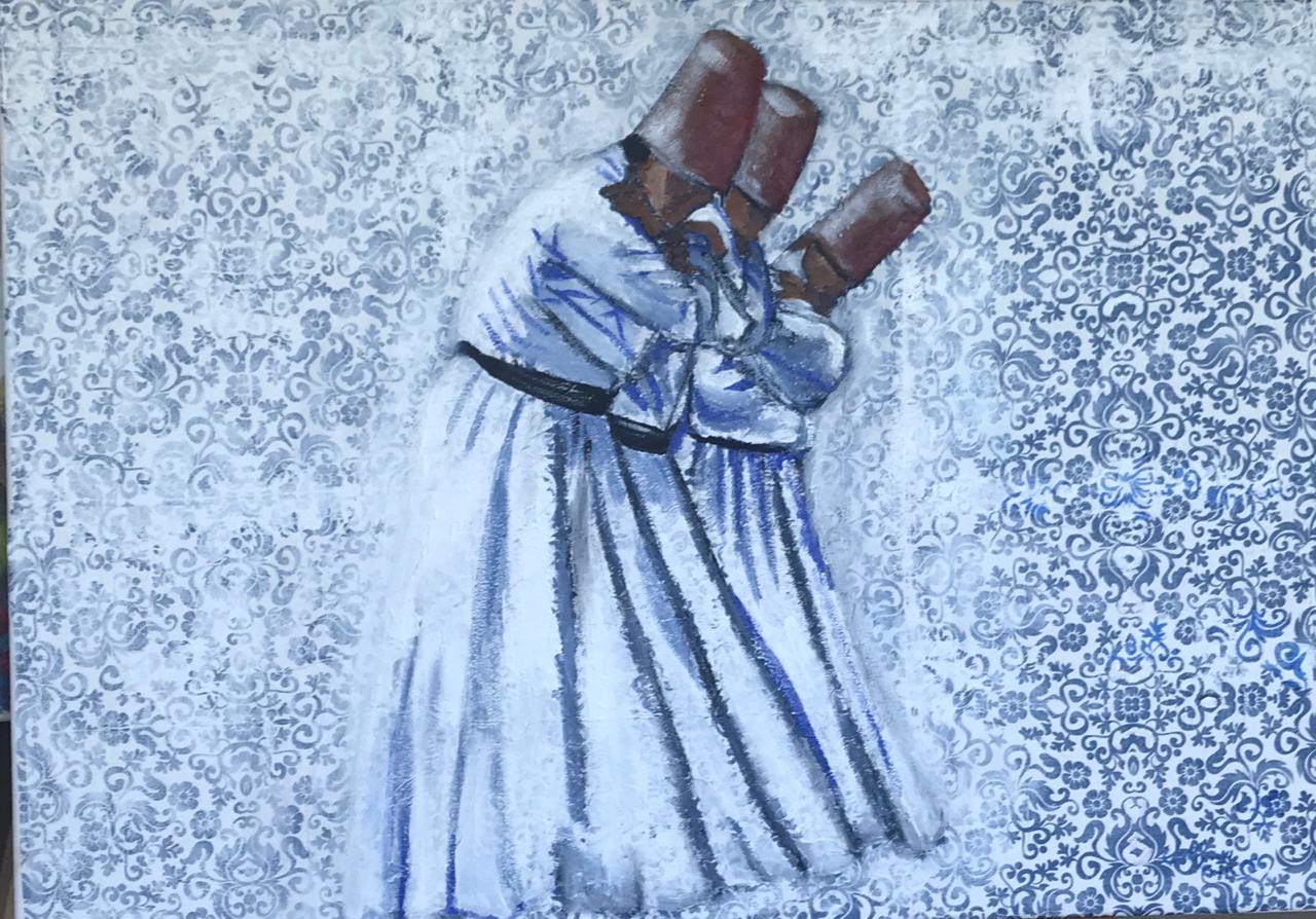 A Sufi is a state rather than a being. It is the epitome of love, leading to Divine Love, where the being only sees the beauty of the Creator in abundance all around him. The complexity in capturing this state of enrapturing is great and yet Samar executes it in a manner that is not only pleasing to the eye but also leaves the viewer with a sense to stepping into that realm, only if for a few moments.